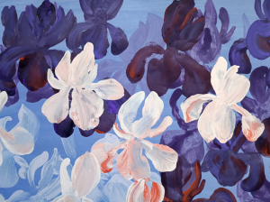 Le titre de l’exposition, Les Arpents du Paradis, est une invitation de l’artiste à la déambulation et à la contemplation. L’arpent, unité de mesure ancienne et imprécise, a donné le verbe arpenter: mesurer le monde, mais aussi le reconnaître. C’est une activité que l’artiste pratique assidûment, marchant, observant, traversant forêts, campagnes et jardins, selon le rythme des saisons. C’est là qu’elle puise son inspiration, attentive aux cycles, aux floraisons, aux variations de lumières et de couleurs. Le paradis évoqué ici est évidemment le jardin, un jardin devenu légèrement dystopique, où sa beauté se heurte à sa propre artificialité.